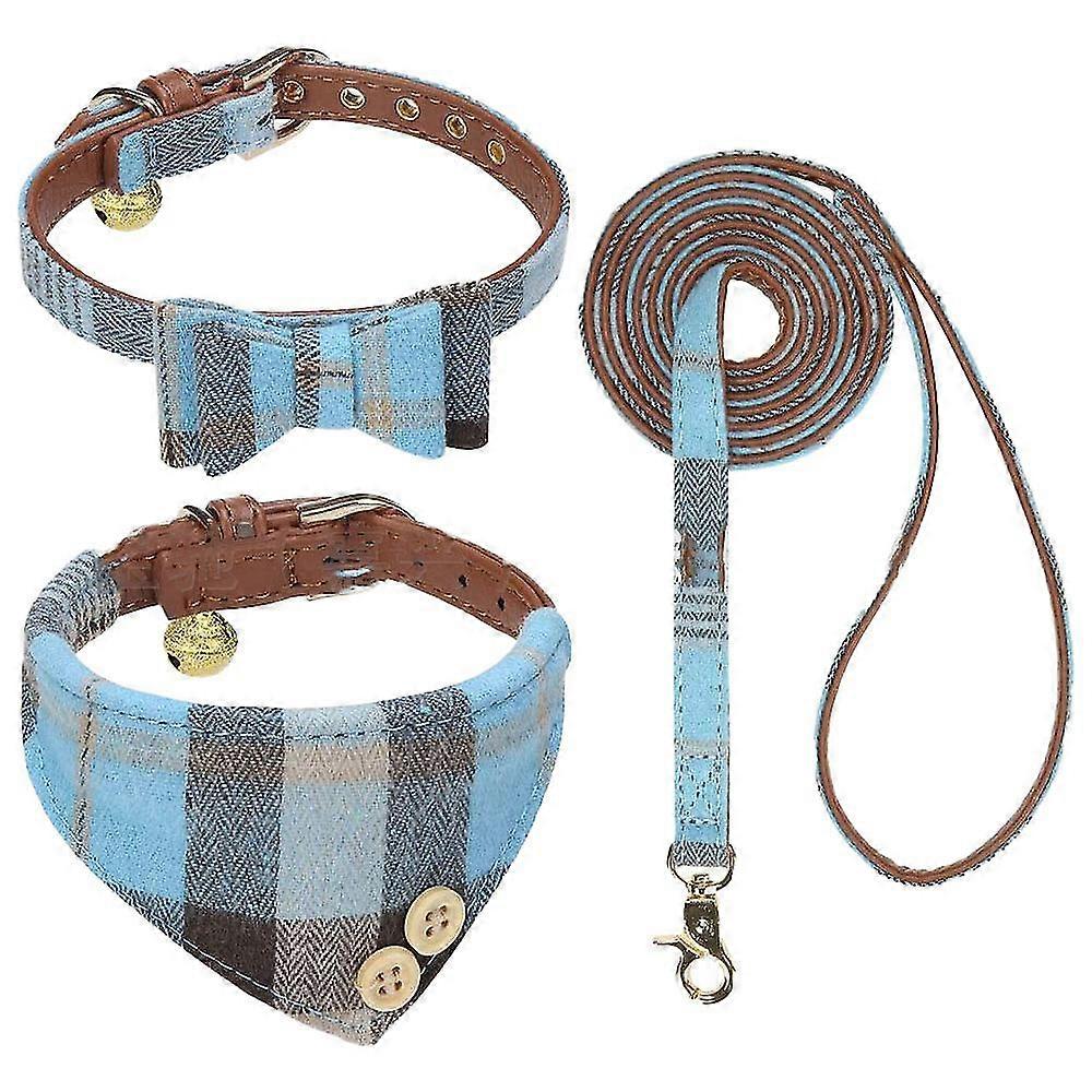 3pcsdog Collar And Leash Dog Bow Tie With Bell Dog Bandana Dog Skin Dog Collar Dog Beige S