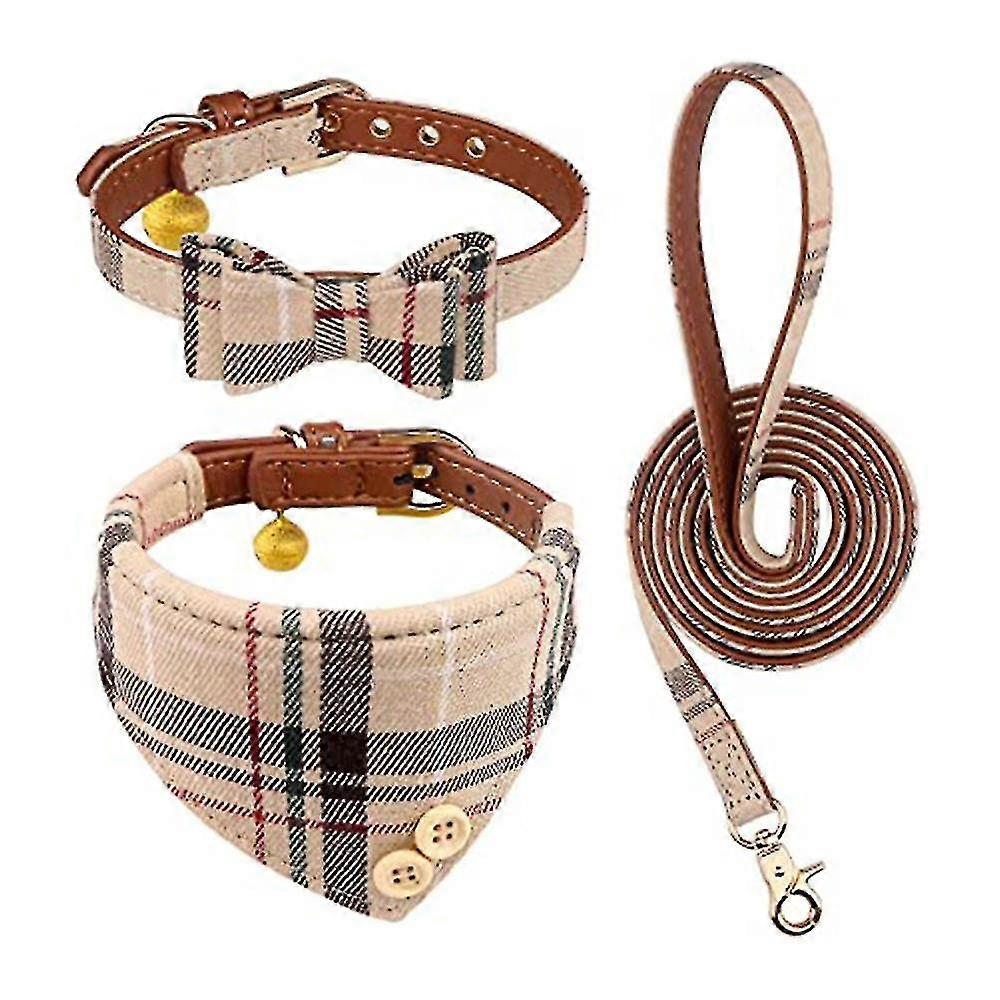 3pcsdog Collar And Leash Dog Bow Tie With Bell Dog Bandana Dog Skin Dog Collar Dog Beige S