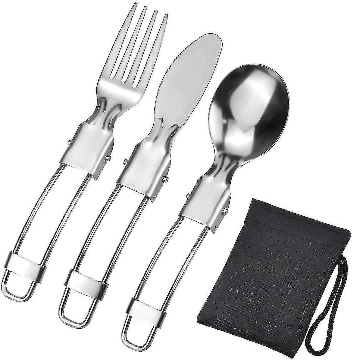 3pcs Foldable Cutlery Set Portable 304 Stainless Steel For Camping Picnic Outdoor