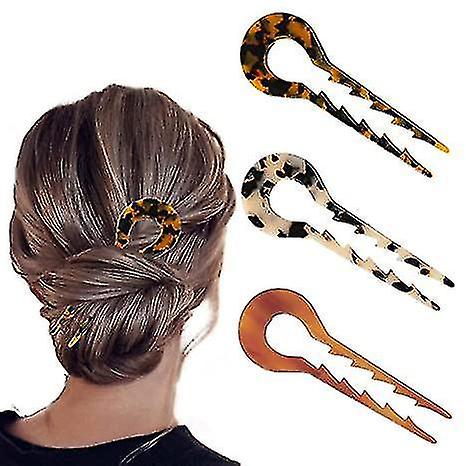 3Pcs U Shaped Hair Pins French Hair Pins Hair Forks Acetate Long 5.3inch 2 Prong Bun Pins Chignon Pins Hair Stick For Women Thick Hair