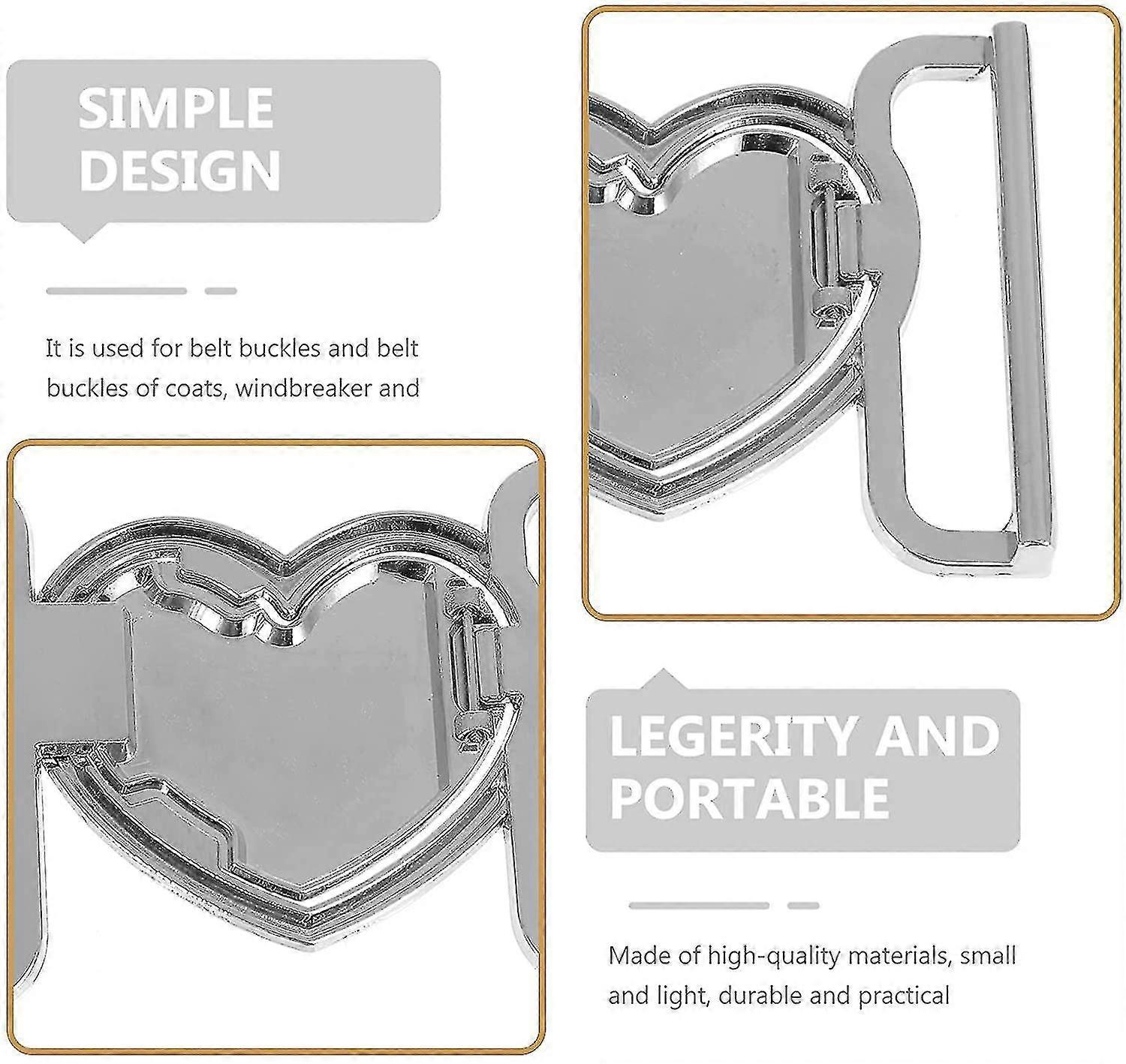 3pcs Overall Buckles Zinc Alloy Coat Waist Belt Buckles Heart Shape Buttons Connector For Diy Women Coat Bag Luggage Accessory (silver)