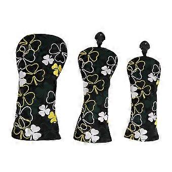 3pcs Golf Head Cover For Fairway Woods Driver Hybrids Pu Waterproof Golf Club Headcover With Four Leaf Clover Pattern Black