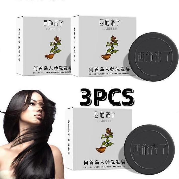 3pcs Cover Grey Bar Shampoo Soap Natural Polygonum Essence Hair Darkening Shampoo
