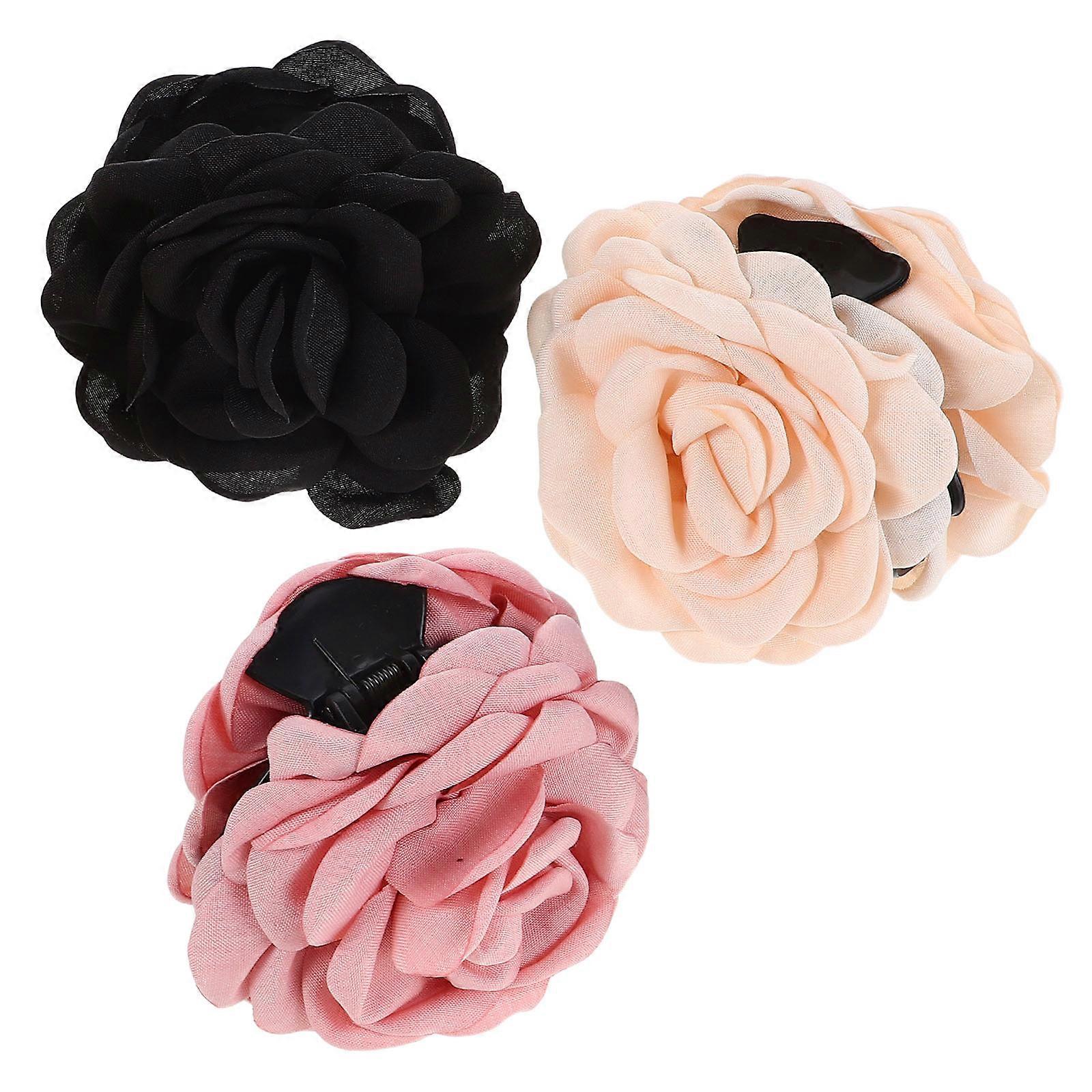 3pcs Large Rose Hair Claw Clips Strong Hold Non Slip Floral Hair Grips for Women Bridal Holiday Party Accessories