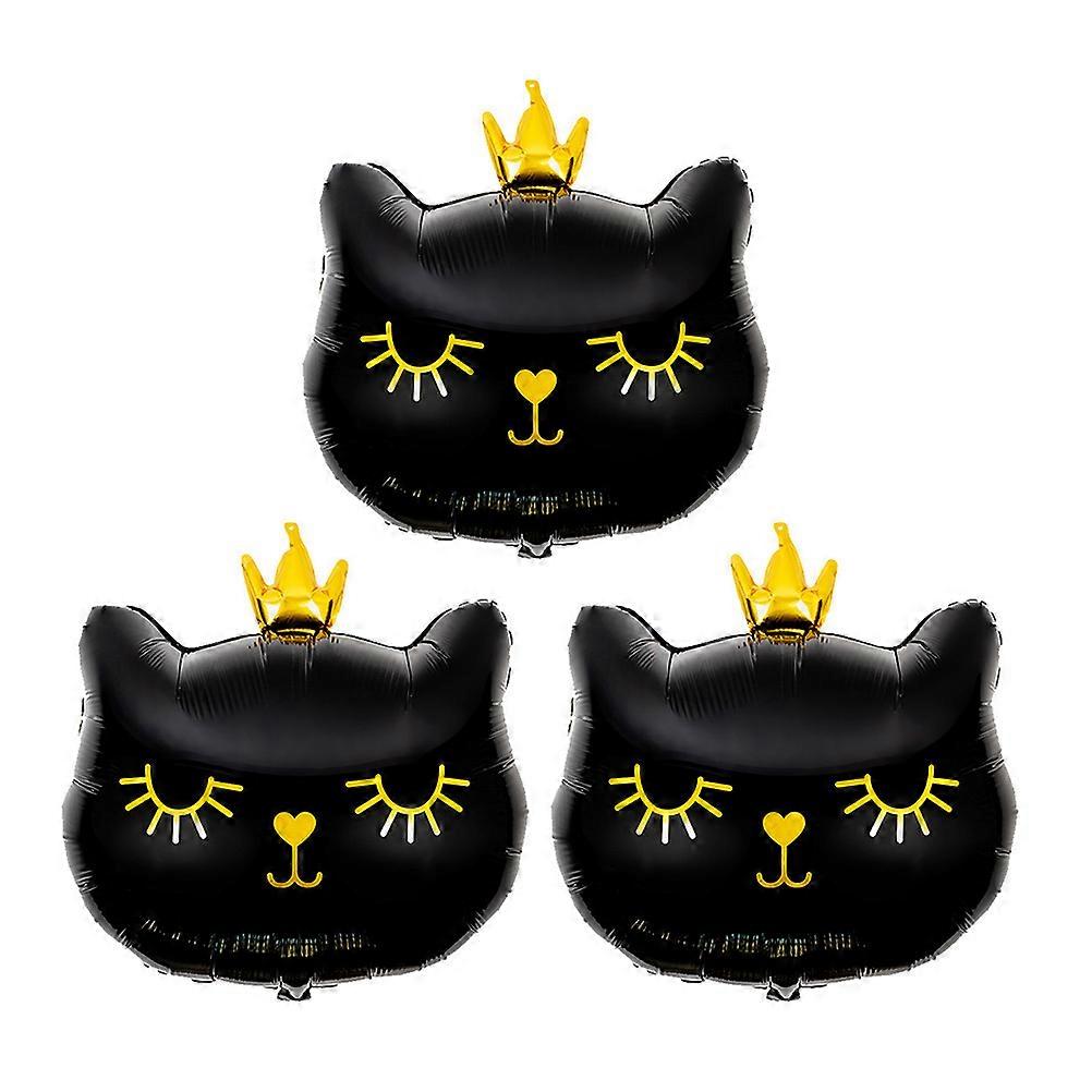 3pcs Crown Cat Balloons Foil Party Supplies for Cat Lovers, Easy to Use, Elegant Design for Birthdays, Celebrations & Photo Props