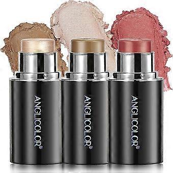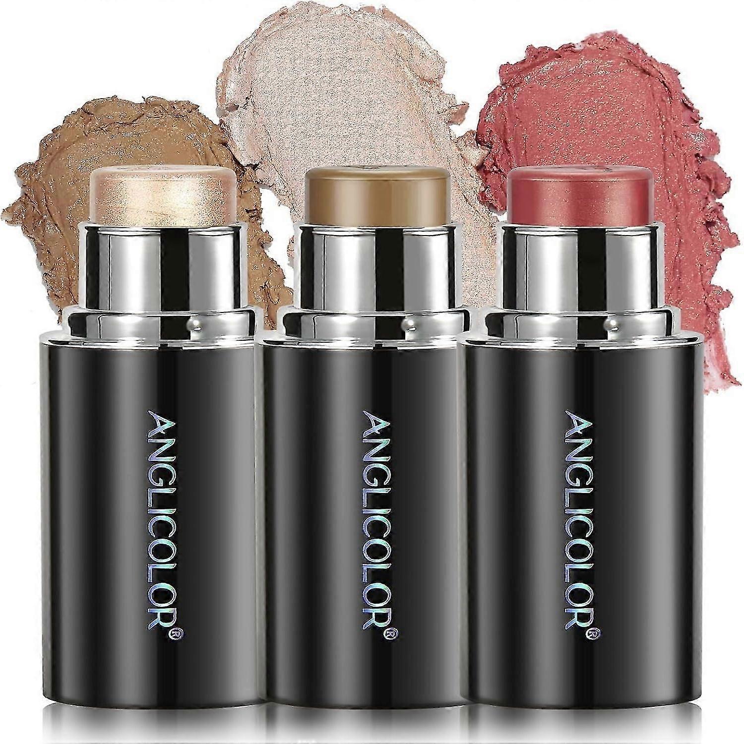 3Pcs Cream Bronzer, Blusher Stick, Highlighter Stick Set, Matte, Long Lasting, Smooth, Blendable, Floral Fragrance, Hydrating
