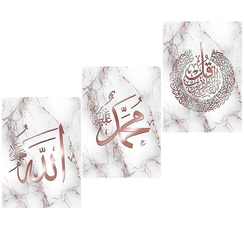 3pcs Frameless Marble Pattern Wall Paintings with Rose Gold Lettering – Canvas Art for Home, Office, Living Room, Bedroom Decoration