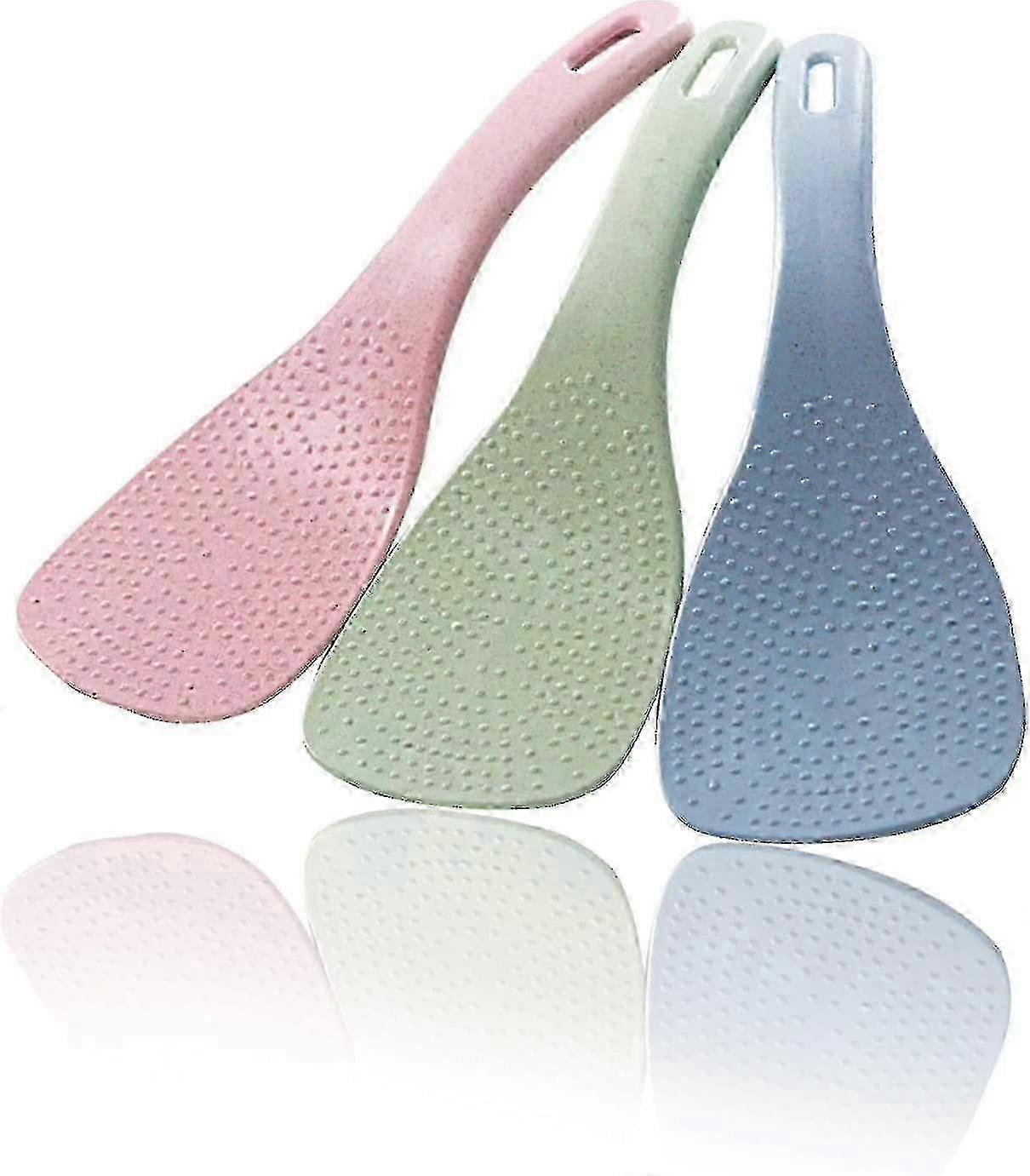 3 Pcs Rice Paddle, Non Stick Rice Spoon Rice Spatula, Premium Rice Cooker Rice Scoop Serving Spoons For Home Kitchen Tools (pink, Green, Blue)