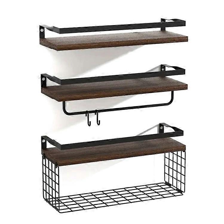3Pcs / Set Wall Mounted Floating Shelves Wood Board Iron Basket Towel Rack Storage Shelf