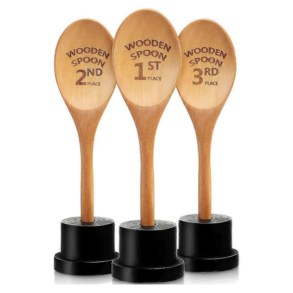 3 Pieces Golden Spoon Award Trophies Set Chili Cook Off Wood Spoon Prizes Wooden Engraved with Trophy Base Cooking