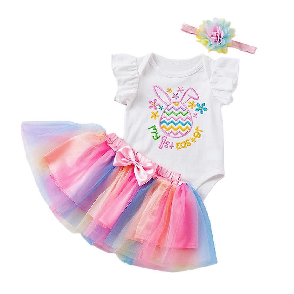 3Pcs/Kit Newborn Infant Baby Girl's Outfits Set My First Easter Romper + Tulle Skirt + Headband Summer Clothes