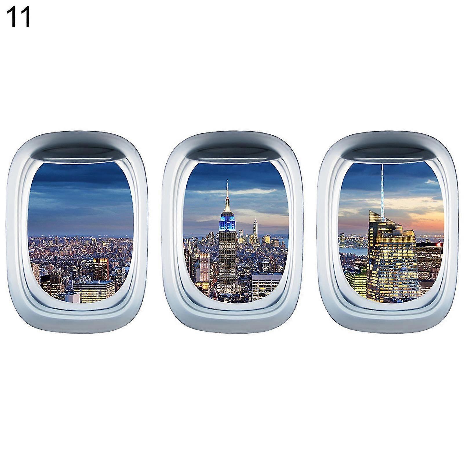 3Pcs/Set Airplane Window Decal Three-dimensional Self Adhesive Window View Landscape Wall Decor Airplane Wall Stickers for Home-Good