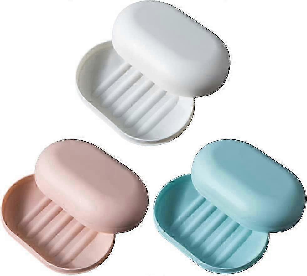 3 Pieces Portable Waterproof Leak Proof Shower Soap Dishes with Cover (3 Colors)