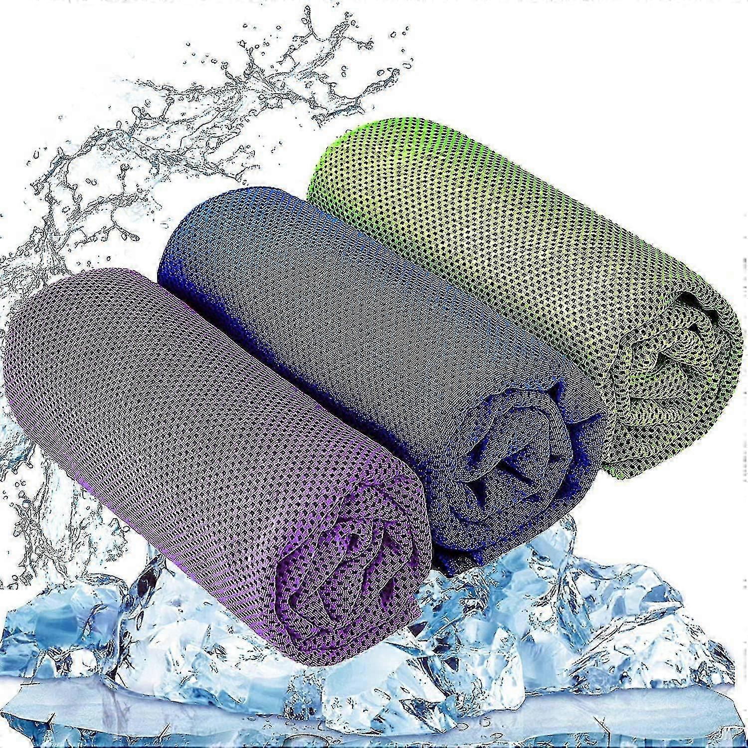 3 Pcs Cooling Towel (100x30 Cm) Cool Cold Towel For Neck, Microfibre Ice Towel, Soft Breathable Chilly Towel For Yoga, Golf, Gym, Camping, Running, Wo