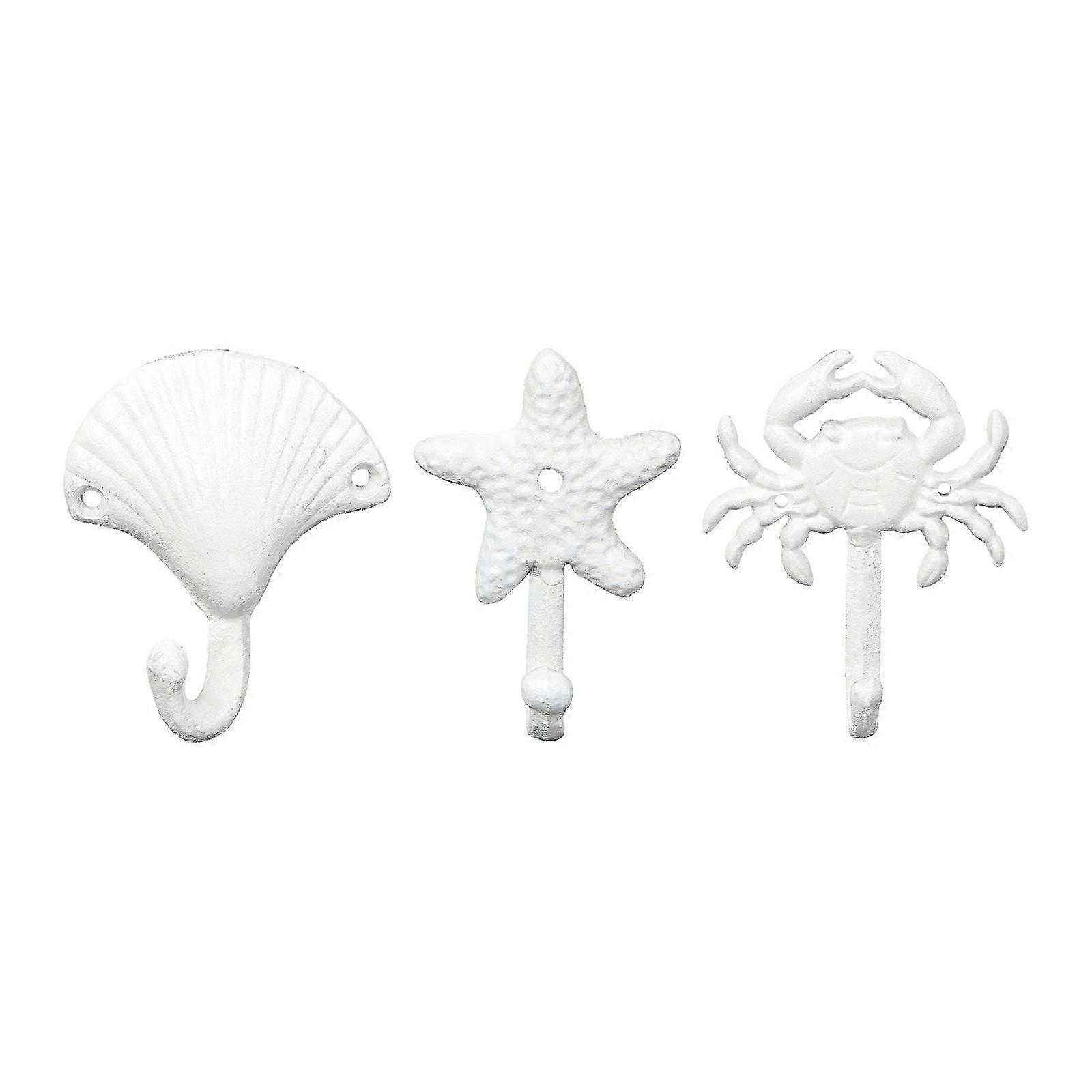 3pcs Wrought Iron Decorative Single Hook Vintage Wall-mounted Coat and Hat Hooks (Crab+Scallop+Sea Star)