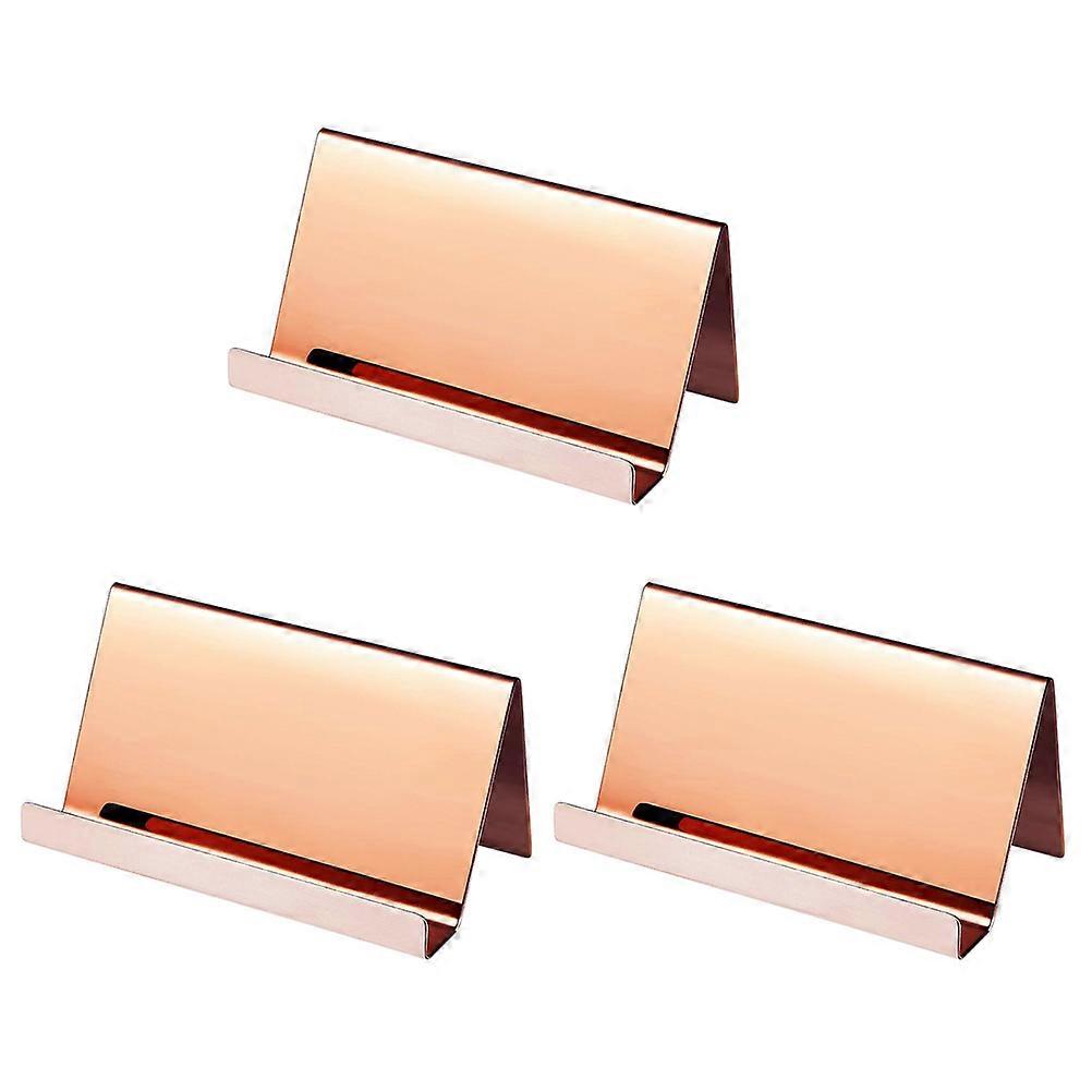 3pcs Rose Gold Stainless Steel Multifunctional Business Card Holder Stand for Office – Sleek Organizer for Cards, Appointment Notes & Memos