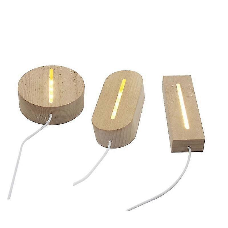 3 pieces of 3D beech wood night light base, luminous base, RGB oval night light, wooden base, atmosp