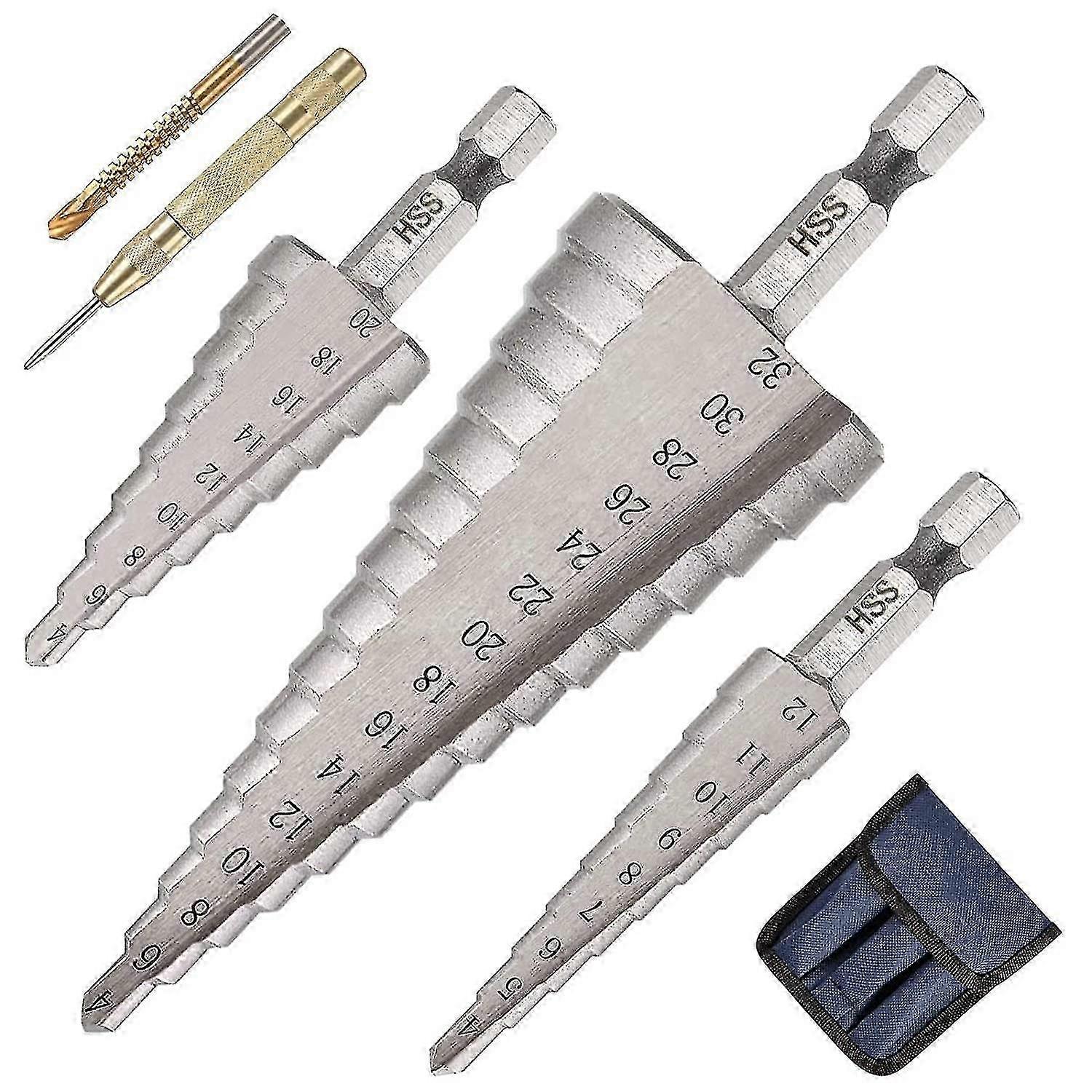 3pcs Metal Step Drill Bit Set, 4-12/20/32mm HSS Titanium Tapered Triangle Design, Hex Shank for Various Materials like Steel, Wood, Brass, A