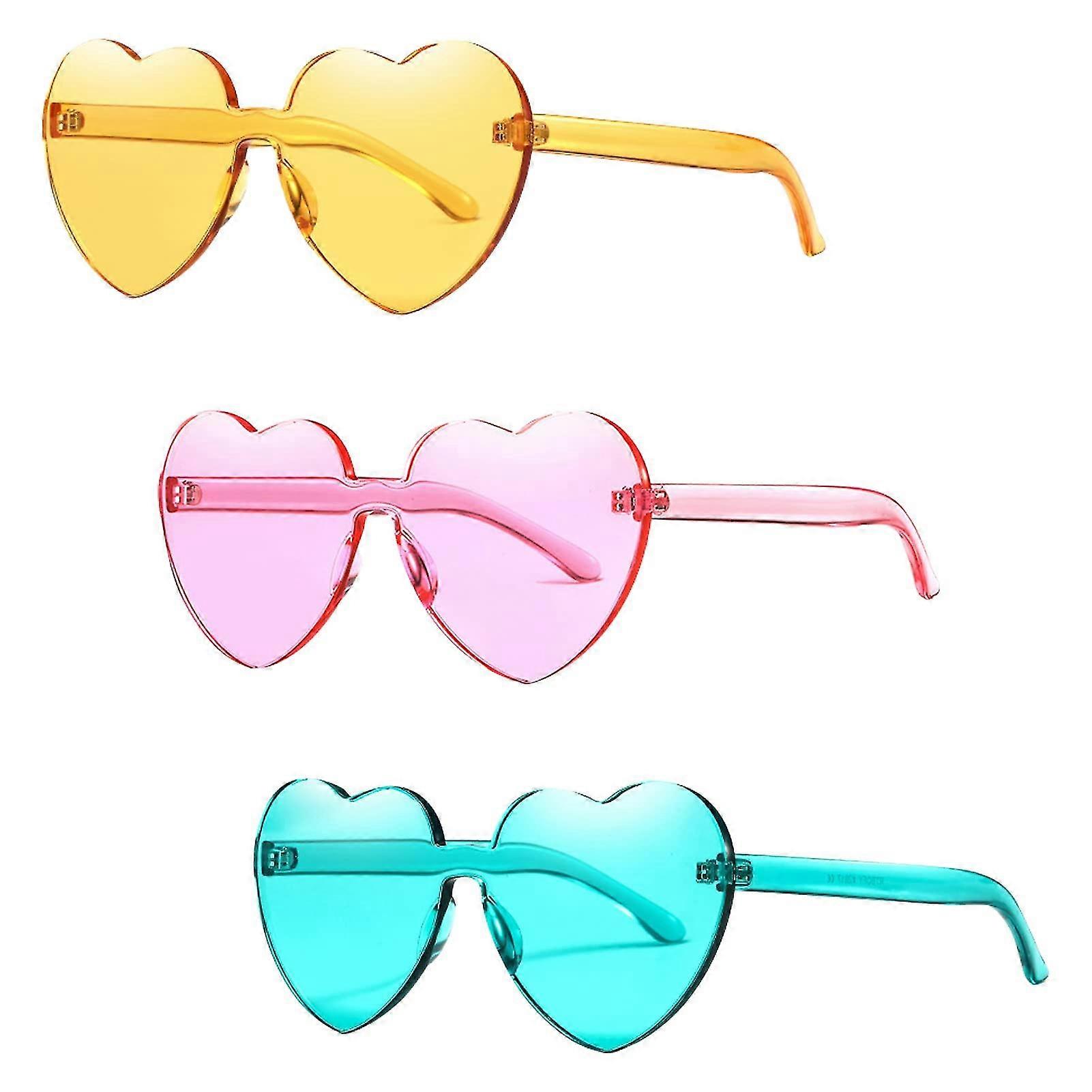 3 Pcs Heart Shaped Glasses, Party Glasses Funky Sunglasses Frameless Love Heart Sunglasses Rimless Sunglasses
