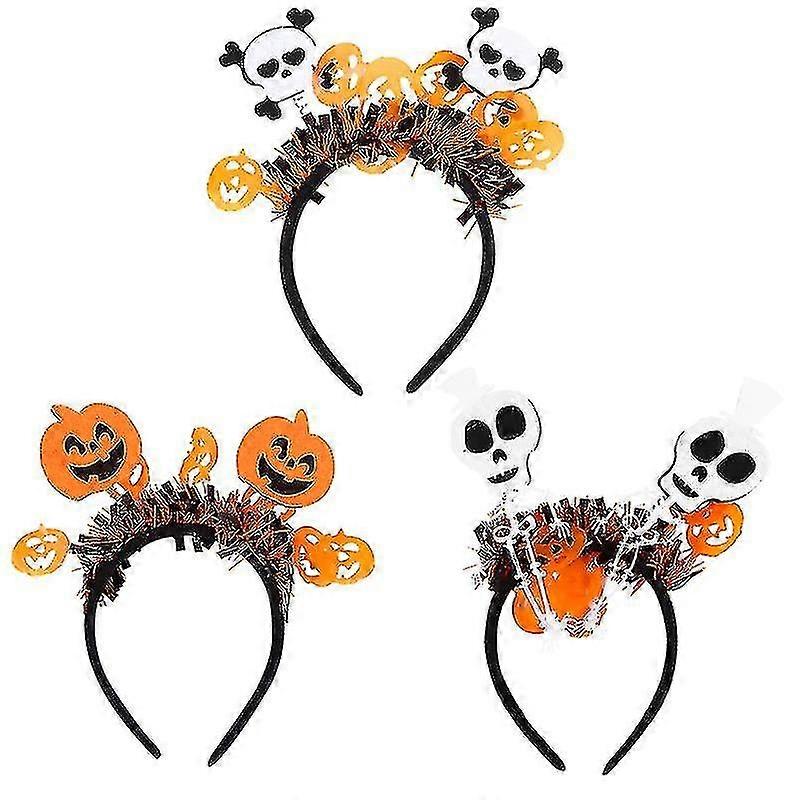 3pcs Halloween Pumpkin Hairband Headband Skeleton Skull Hair Clip Decor