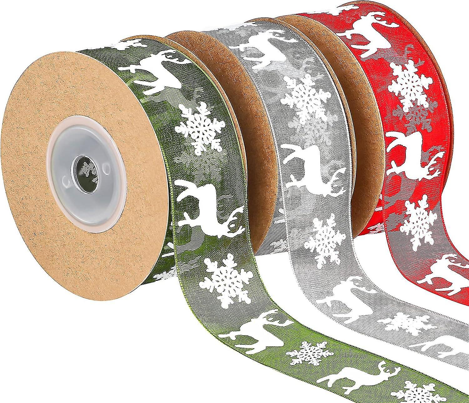 3 Rolls 30 M Christmas Ribbon Gift Wrapping Ribbons Organza Ribbon Gift Wrapping, 25mm SX
