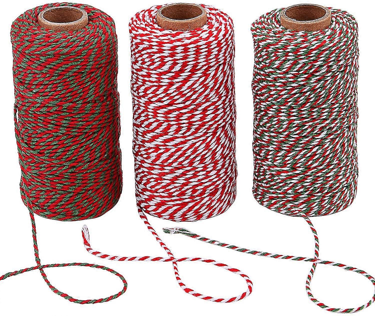 3 Roll Christmas Twine Cotton String Rope Cord For Gift Wrapping, Arts Crafts, 984 Feet (multicolor )