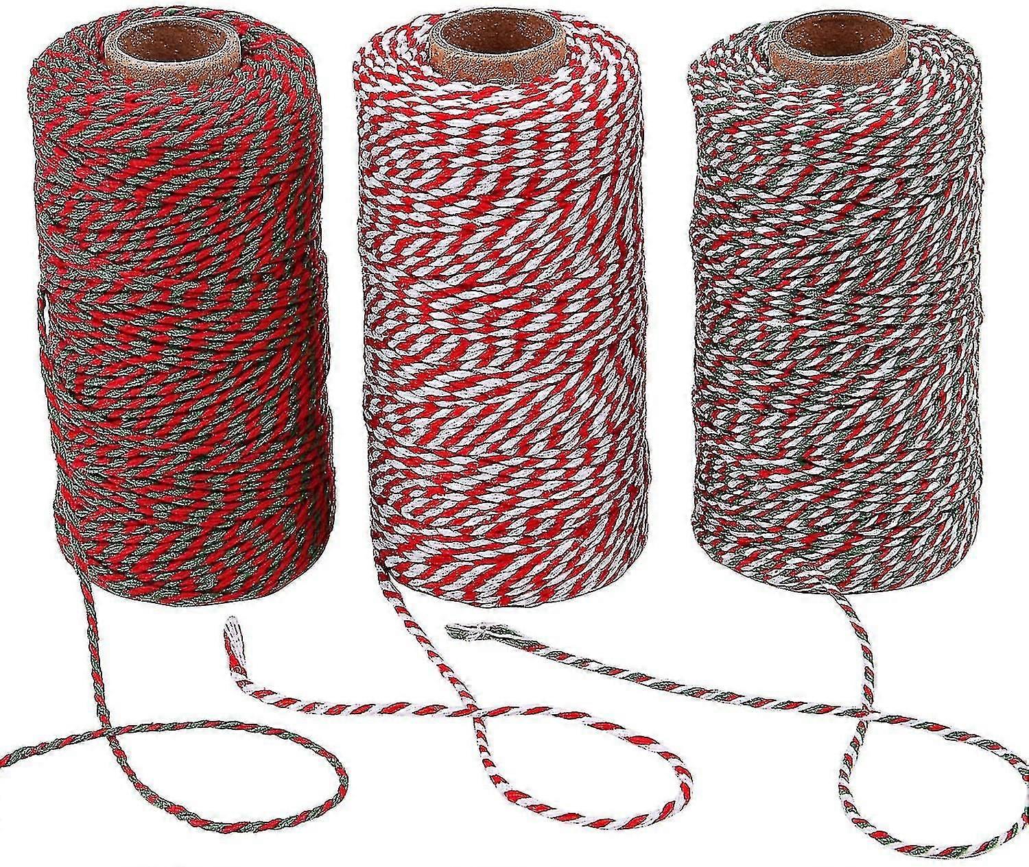3 Roll Christmas Twine Cotton String Rope Cord For Gift Wrapping, Arts Crafts, 984 Feet (multicolor )