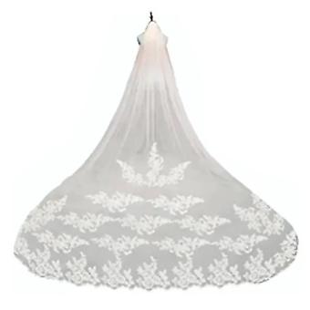 3 Meter Bridal Veil Lace Applique with Metal Comb Fixing Ultra Long Drop Veil for Wedding Ivory Tint Elegant Design