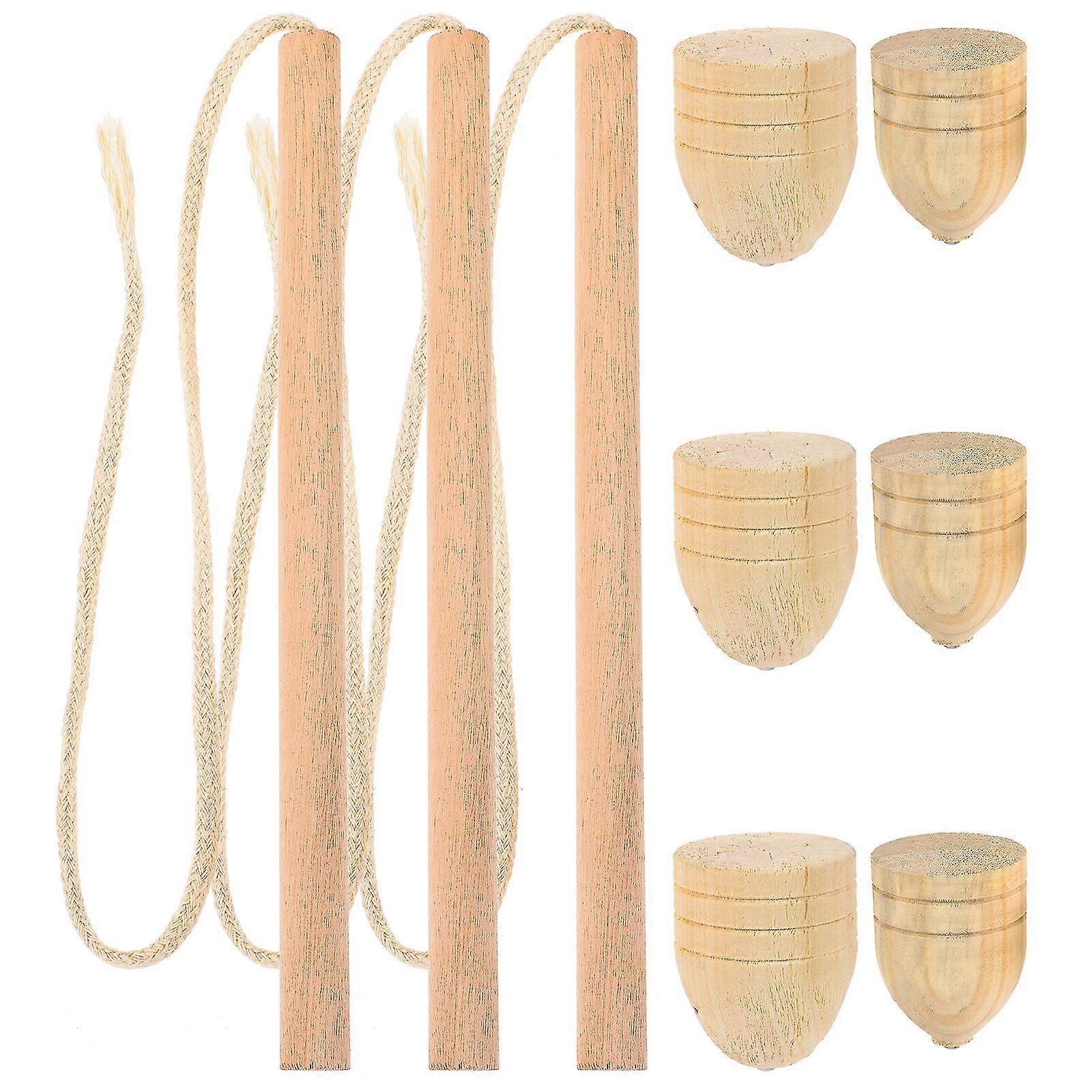 3 Sets Rotary Tops Wood Gyro Toys Chinese Traditional Gyroscopes Rotating Tops And Pole Kids Toys