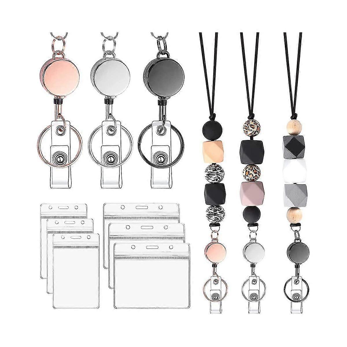 3 Set Retractable Lanyard For Id Badges, Teacher Lanyard With Id Holder Beaded Lanyards For Women B Y