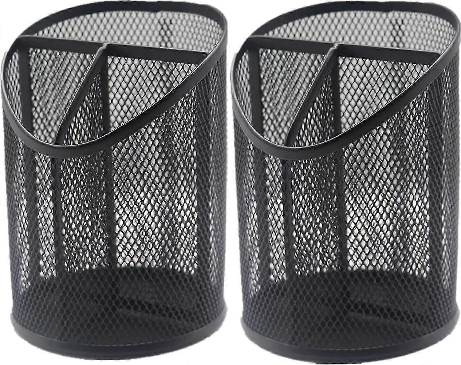 3 Compartments Pen Holder Mesh Round Pencil holder Organizer Cup for Desk Office Black, 2 Pack