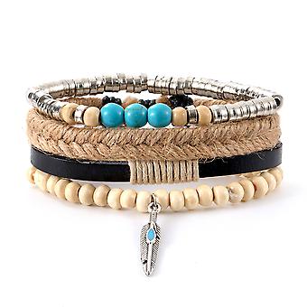 3-4pcs/sets Vintage Anchor, Leaf, Owl Bracelets For Men Fashion Black Leather Bracelet & Bangles Multilayer Wide Wrap Jewelry