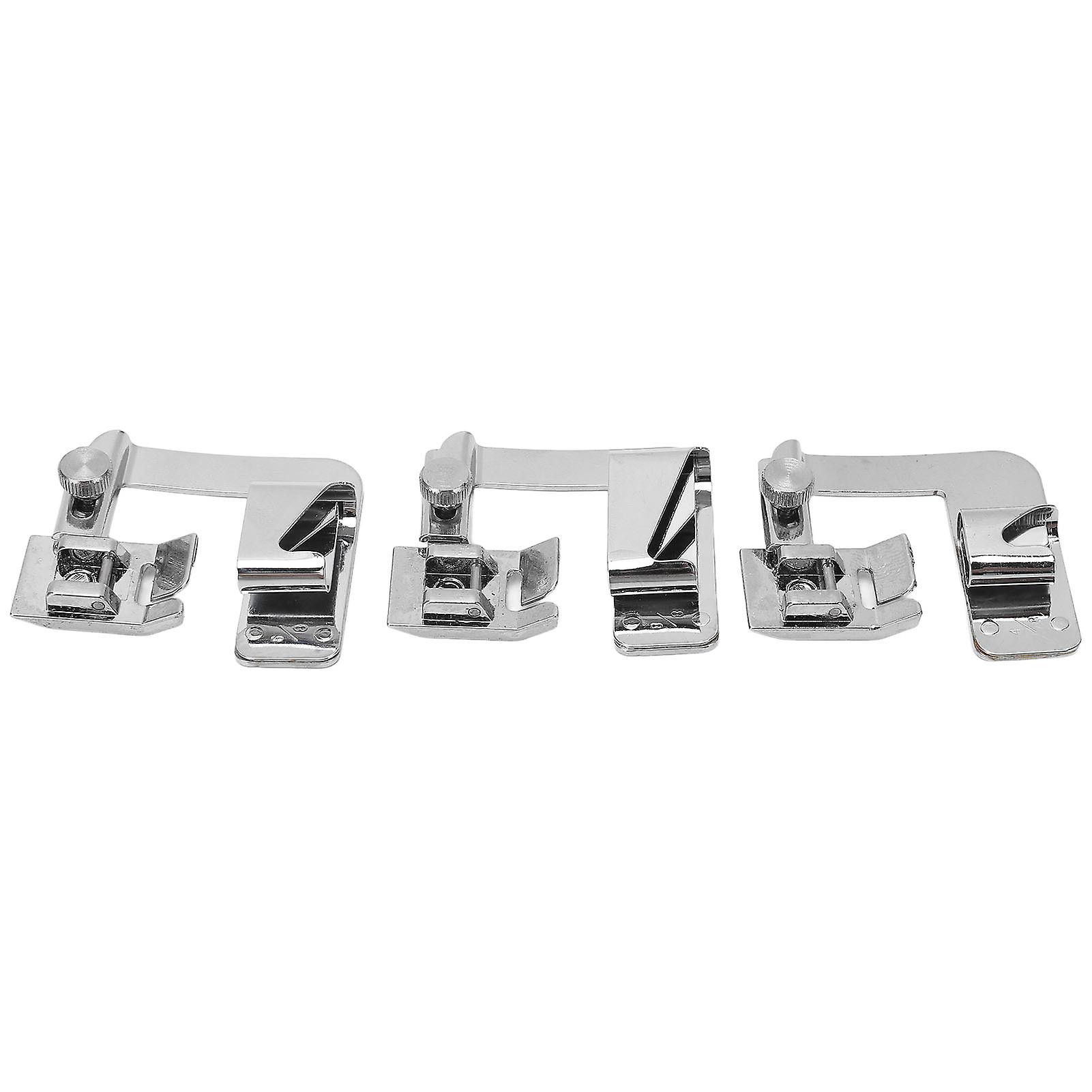 3Pcs Rolled Hem Presser Foot 4/8in 6/8in 8/8in Stainless Steel Easy Installation Rolled Hem Foot Set for Sewing Machine