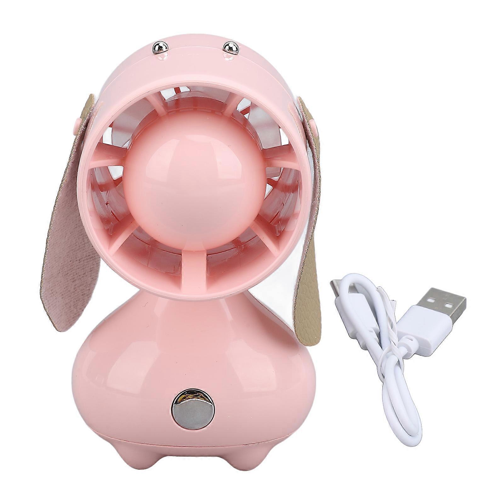 Handheld Fan Cute Cartoon Dog Shaped 3 Speeds Rechargeable Portable Mini Desktop Fan 5V Pink