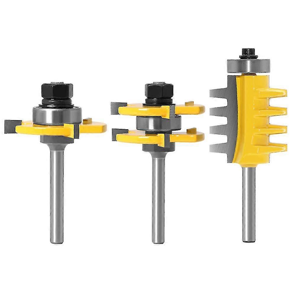 3 Pieces 6mm Shank Carbide Chisel Bit Set - 3 Flute Tongue & Groove Cutter T Shape Woodworking Carpentry Tools