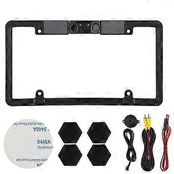 3 in 1 Car License Plate Frame with Parking Sensor Radar Rearview Reverse Backup Camera 2 LED AV Interface Compatible