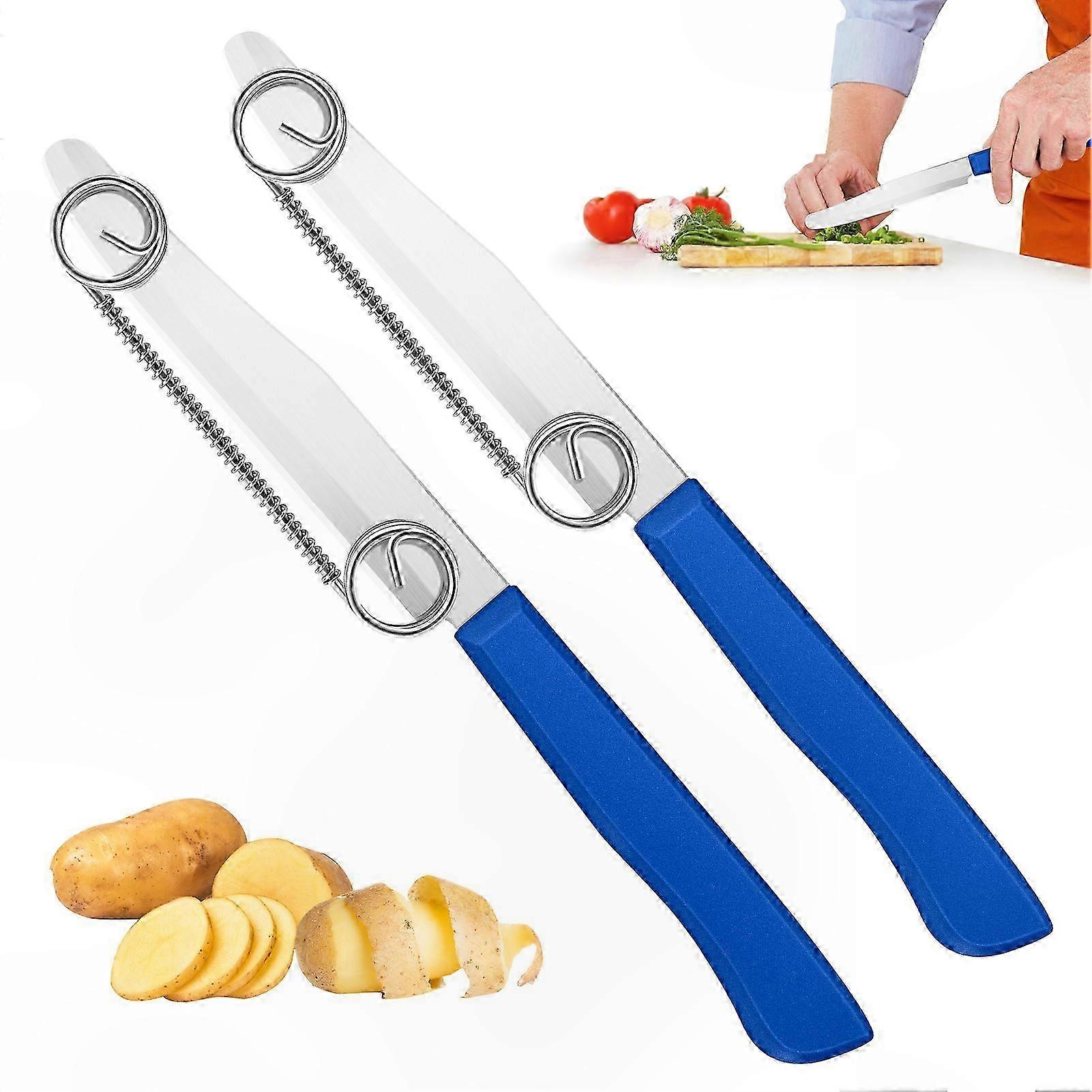 3-in-1 Multi-Functional Peeling Tool with Spring, 2-Pack Fruit Slicing Knife for Quick Prep
