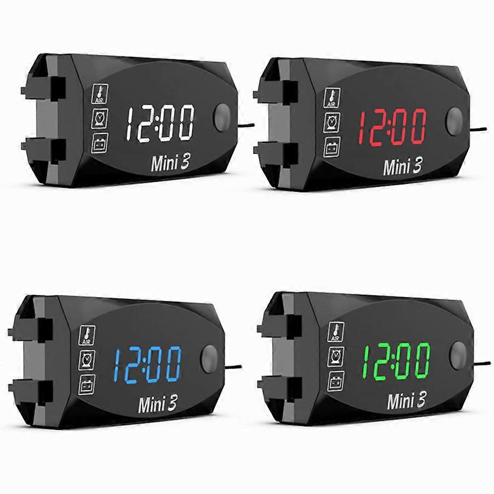 3 in 1 Multifunction Digital Time Clock Thermometer and Voltmeter LED Display Motorcycle Waterproof IP67 for Car Boat DC 6V-30V