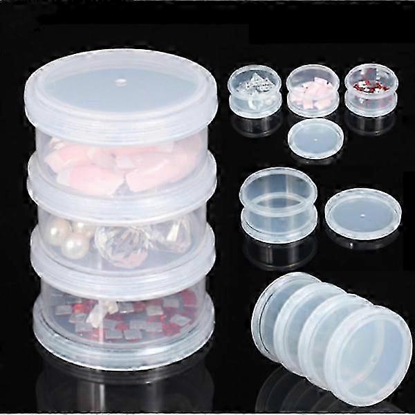 3 stackable jars, storage jars. Perfect for storing small things such as nail decorations, pearls etc.?PERFECT COMBINATION DESIGN-They screw together to easily sort the powders and other small things. You can combine the cases freely and make them orderly.? SUPER CLEAR CONTAINERS- They are made of clear plastic which made them extra transparent and you can see the beauty of the products and look for the specific items comfortably.? CONVENIENT SIZE FOR SAMPLES- They are conveniently sized for samples of nail art powder, pearls, rhinestones, small gift and mineralized cosmetics.?HIGH GRADE PLASTIC WITH ABSOLUTELY AIRTIGHT - These plastic jars are of high quality with precise packing. Each container has a round, clear lid to create a tight seal that won't leak.?HOME PACK FOR TRAVEL- Perfectly sized to carry in small purses and use to sort out cosmetics on the go.Size: 6.5 x 9.7cm Quantity: 1st pack contains 3 stackable jars. Get 3 stackable storage jars that are perfect for keeping your little things like nail decorations and beads organized. The combination design makes it easy to sort and organize the powder and other small items. These clear containers are made of clear plastic, making it easy to find what you're looking for. With suitable size for nail art powder, pearls, jewelry and cosmetics. Made from high quality plastic with airtight lids to ensure nothing leaks out and perfect for travel.