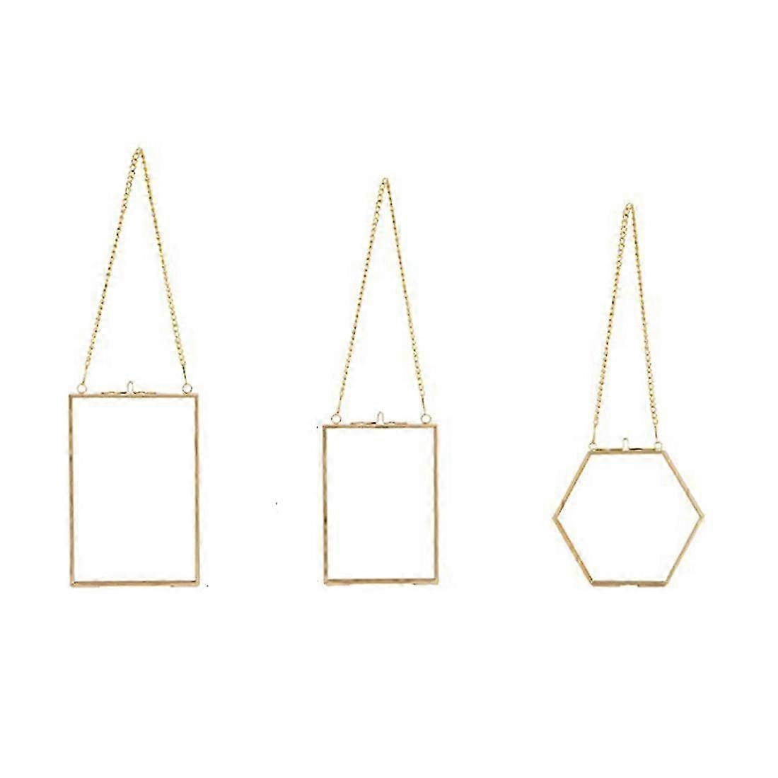 3 Packs Pressed Flower Glass Frames with Hanging Chains for DIY Floating Artwork Display and Home Decor
