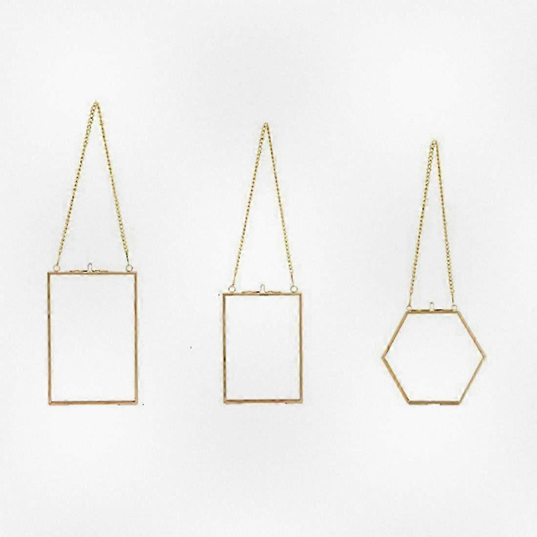 3 Packs Pressed Flowers Glass Frames with Hanging Chain for DIY Floating Artwork Display and Home Decor
