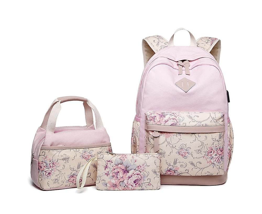 3 Pcs/set 777 Printed Student Backpack Large-capacity Computer Backpack(pink)