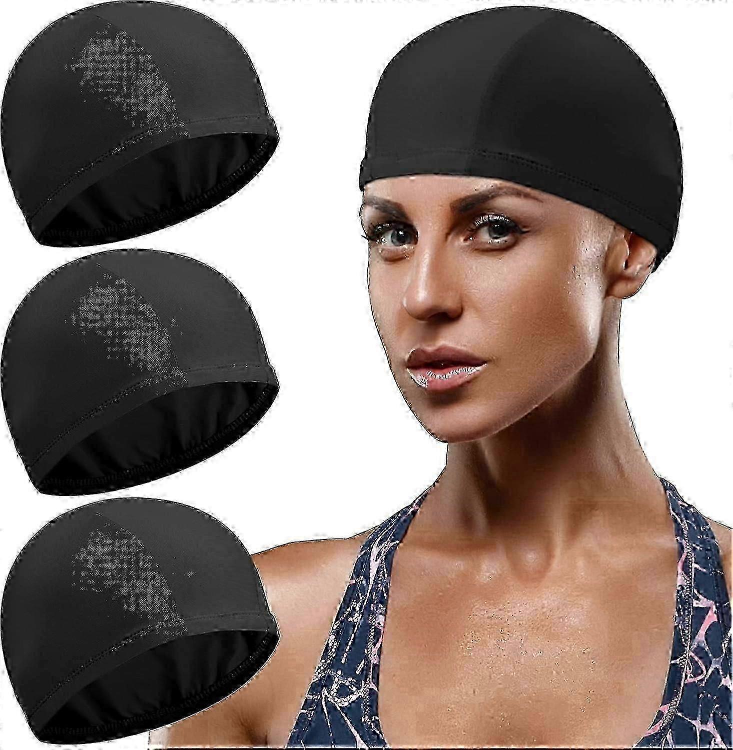 3-Piece Elastic Unisex Swim Caps - Non-Slip Fabric Bathing Hats For Lap Swimming/Training_cp -NEW