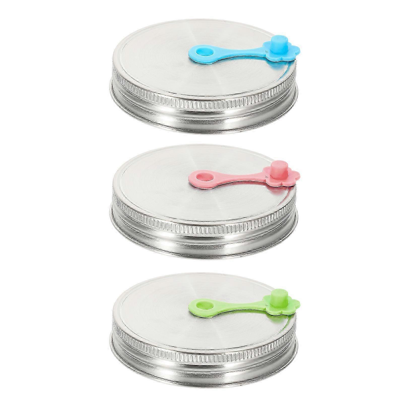 3 Sets of Mason Jar Lids with Straw Hole Stainless Steel Straw Lids Straw Lid with Plugs