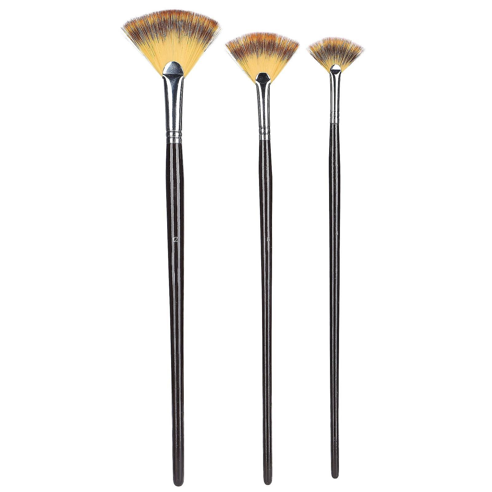 3pcs Fan Shape Painting Brushes Nylon Hair Watercolor Paint Brush Set with Wooden Handle