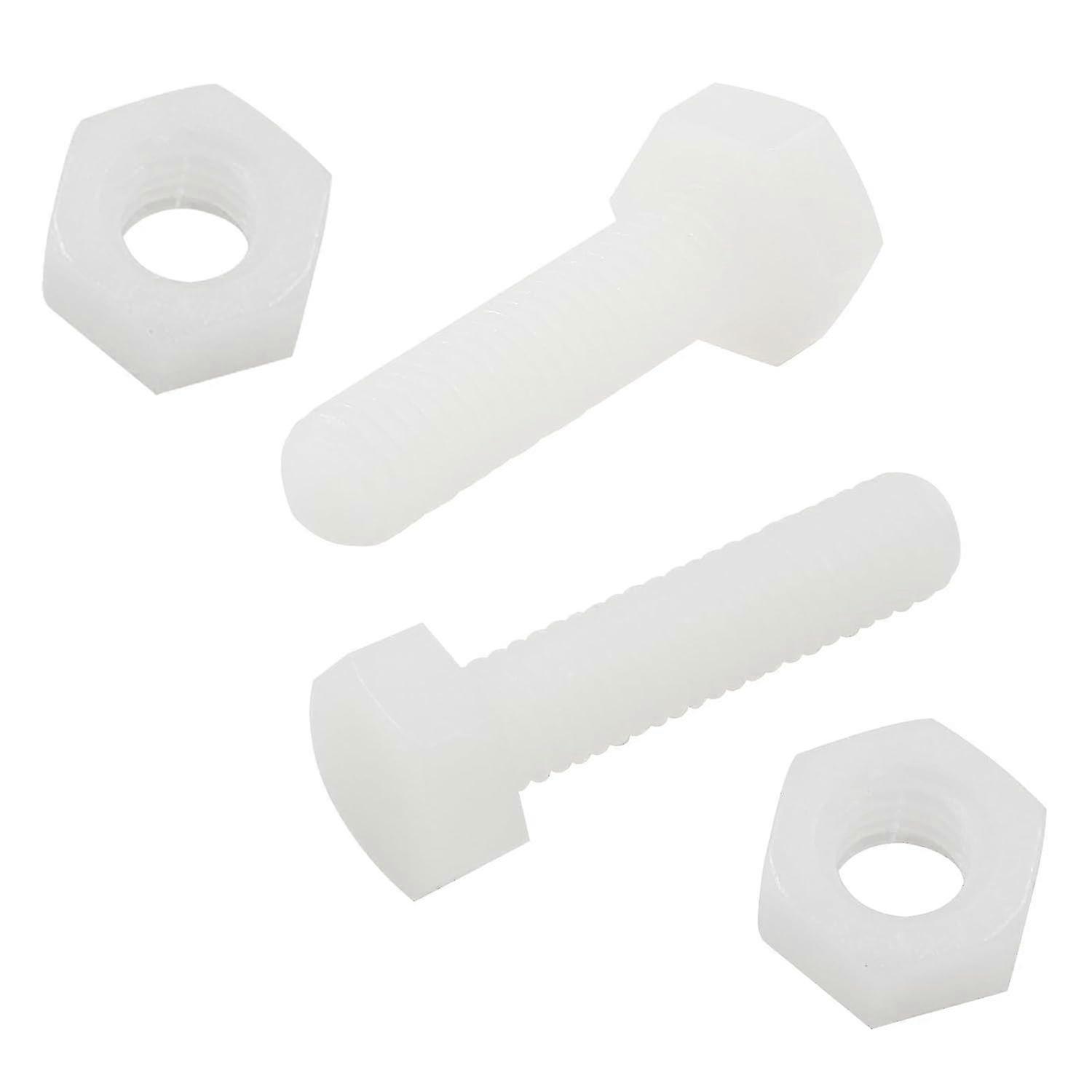 30 Pair M6 x 25mm Nylon Hex Bolts Set, White Plastic Full Thread Hex Head Screws and Nuts for Various Applications, M6x25mm