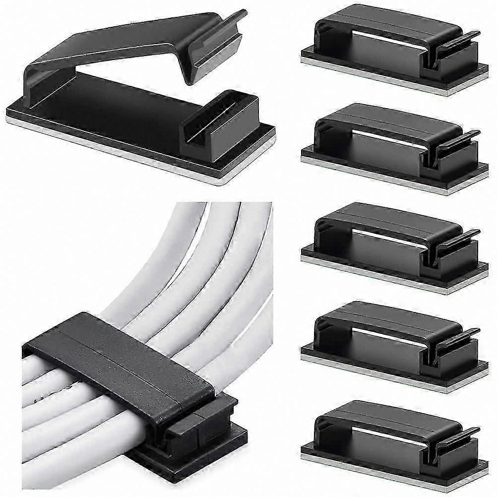 30-Pack Adhesive Cable Clips, 46x18mm, Black, Self-Sticking Cord Organizers for Home and Office Use