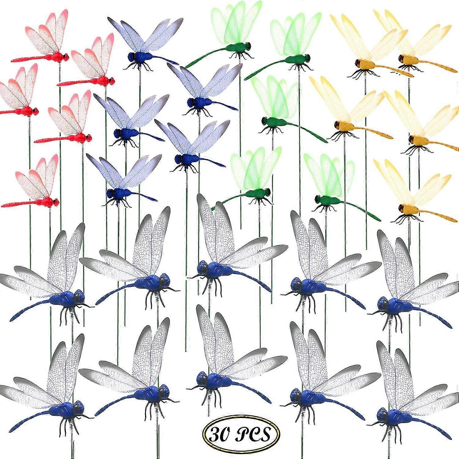 30 Pcs Dragonfly Garden Ornaments, Dragonflies With Sticks For Plant Decoration, Patio Deck, Garden Yard, Garden Decoration