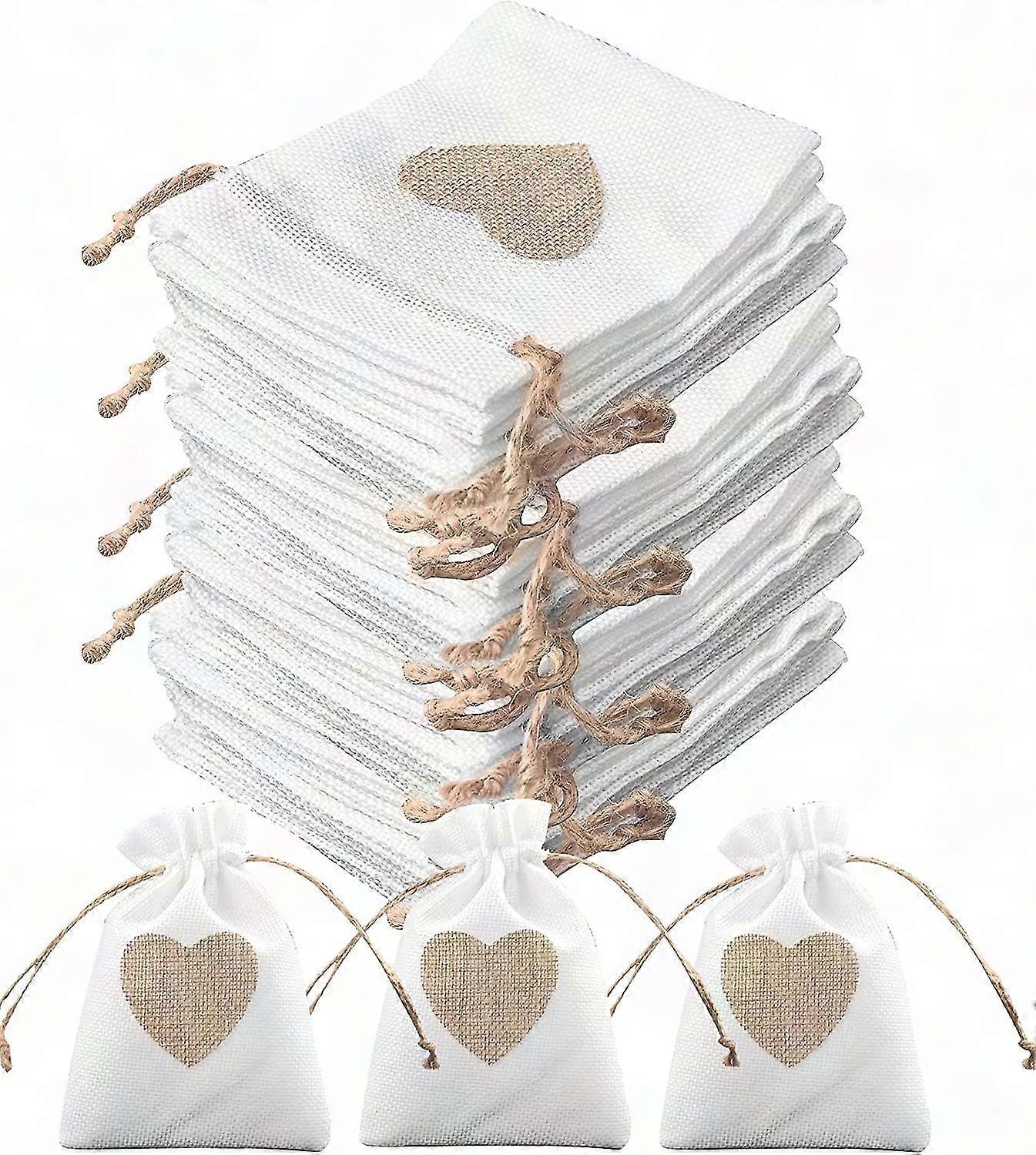 30PCS Burlap Bags 10x14cm Heart Pattern Jute Pouches with Drawstring for Candy Jewelry Wedding Favors Gift Box