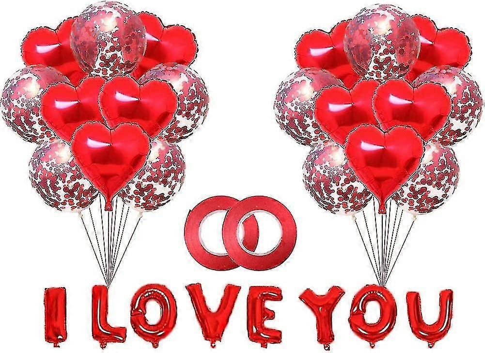30 Pieces I Love You Balloons Set, 10 Inch Confetti Latex And Foil Balloons Heart Balloons Ha